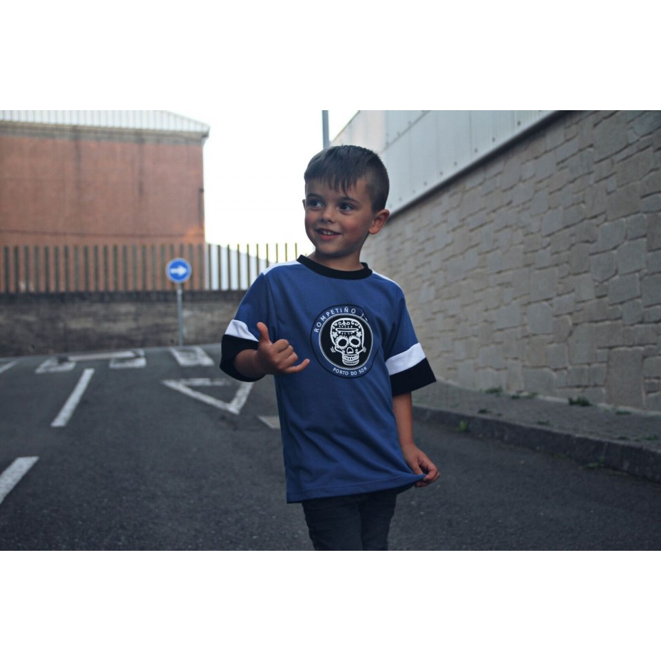 Camiseta de niño del Rompetiño Jump en color azul con logo especial frontal.