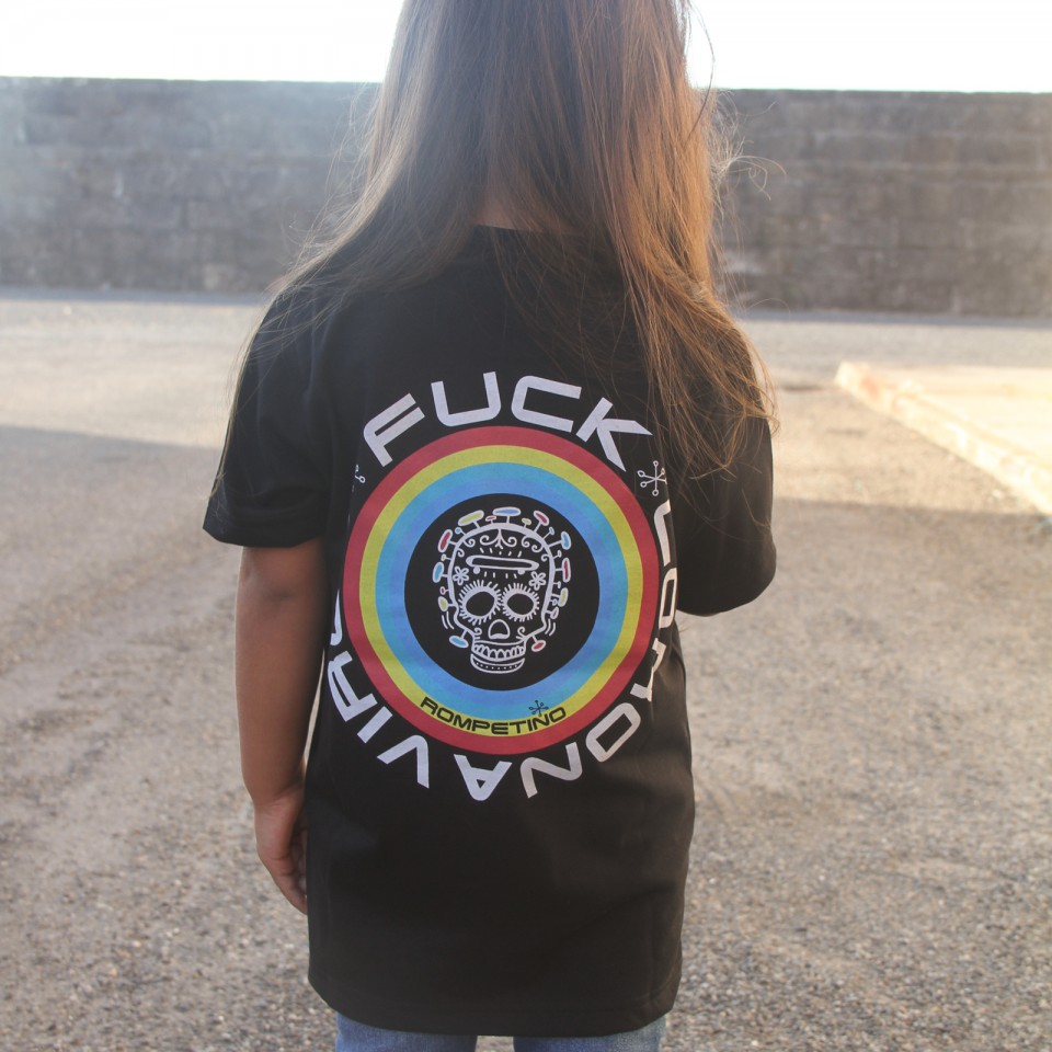 Camiseta negra "Fuck Coronavirus" con logo Rompiente.
