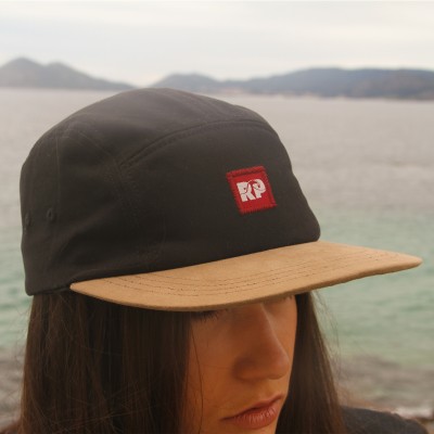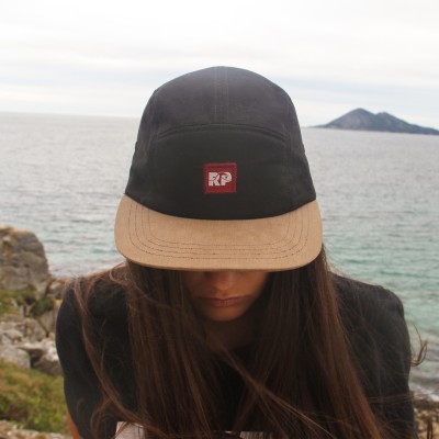 Gorra en color negro y marrón con el logo de Rompiente.