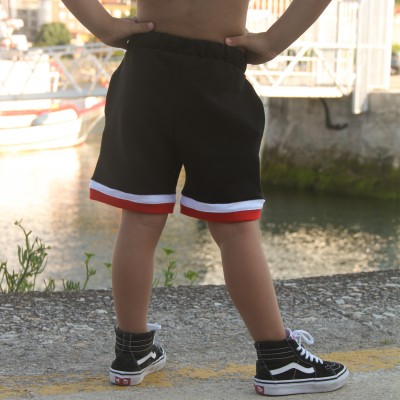 Realizado en algodón de primera calidad en color negro, logotipo y cordones cuadrados en color blanco.