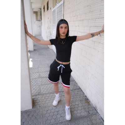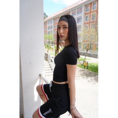 Realizado en algodón de primera calidad en color negro, logotipo y cordones cuadrados en color blanco.